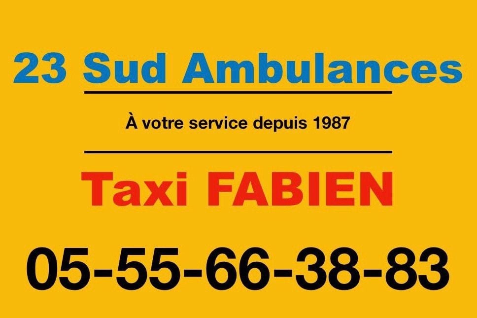 Vous désirez vous rendre à un aéroport, une gare ou à un rendez-vous clinique, faites appel à nos services.;Quel que soit votre trajet et la distance, 23 Sud Ambulances, Taxi Ambulance est à votre service afin de vous satisfaire au mieux.;Grâce à des véhicules de qualité ainsi qu'un personnel expérimenté au service des patients, nous vous garantissons confort et ponctualité pour tous vos transports.;Notre commune de stationnement est Lavaveix les Mines.;Contactez-nous.